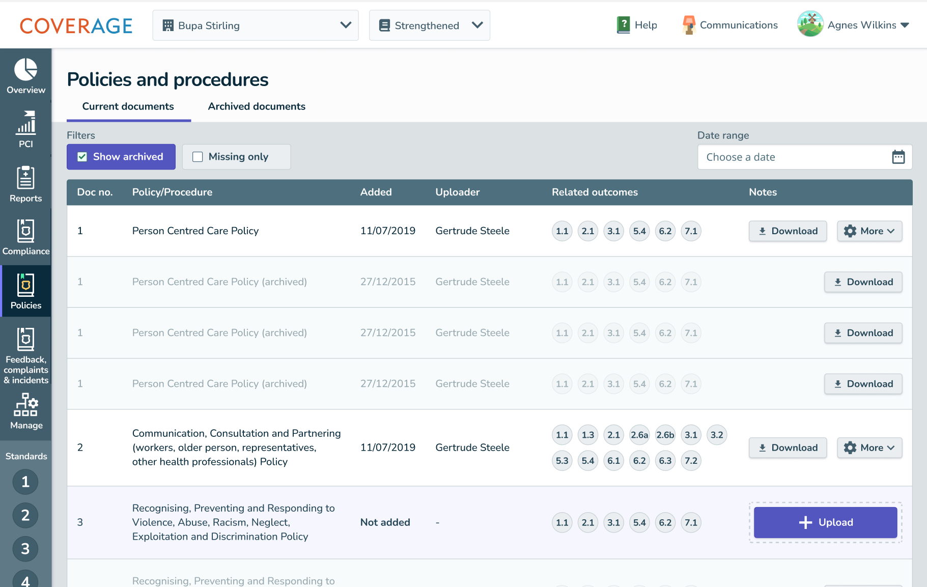 The Strengthened Quality Standards introduce new expectations across seven areas – from The Individual to Food and Nutrition. Coverage helps you align with these Standards by giving you structure, evidence tracking, and audit-ready outputs.